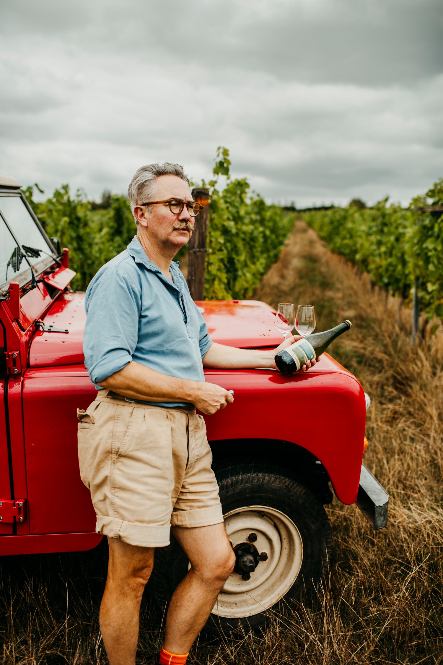 Matt makes English wines based on Pinot Noir, Pinot Gris and Bacchus that he grows in the Leicestershire Wolds.